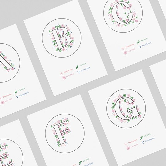Pola Monogram Embroidery – Rose Garden [Video + File PDF siap cetak]